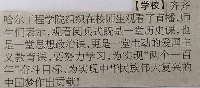 齐齐哈尔日报:我市社会各界干部群众积极观看庆祝中华人民共和国成立70周年大会盛况