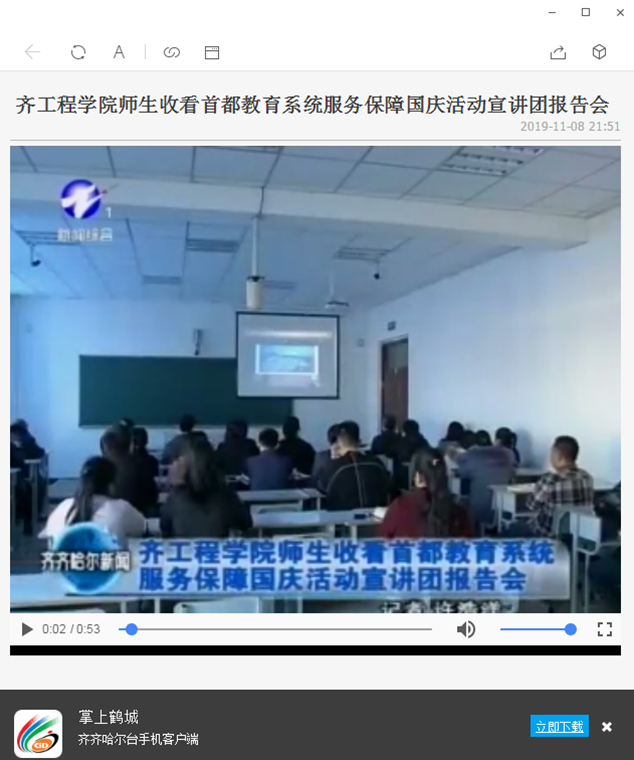 掌上鹤城:齐工程学院师生收看首都教育系统服务保障国庆宣讲团报告会