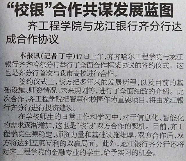 齐齐哈尔日报:“银校”合作共谋发展蓝图