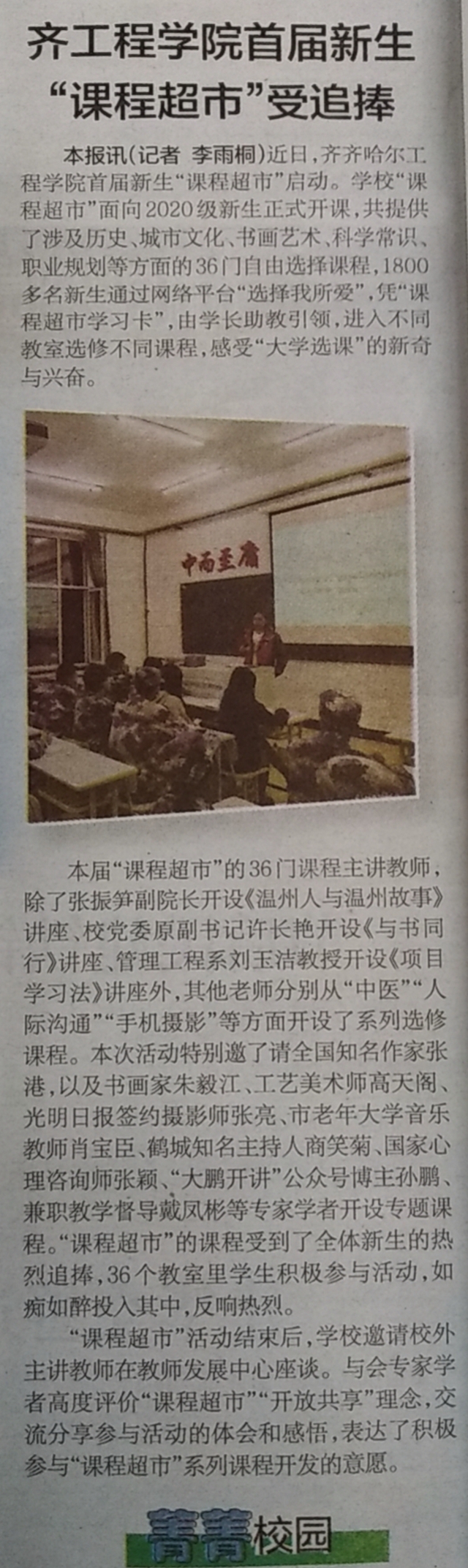 鹤城晚报:齐工程学院首届新生“课程超市”受追捧