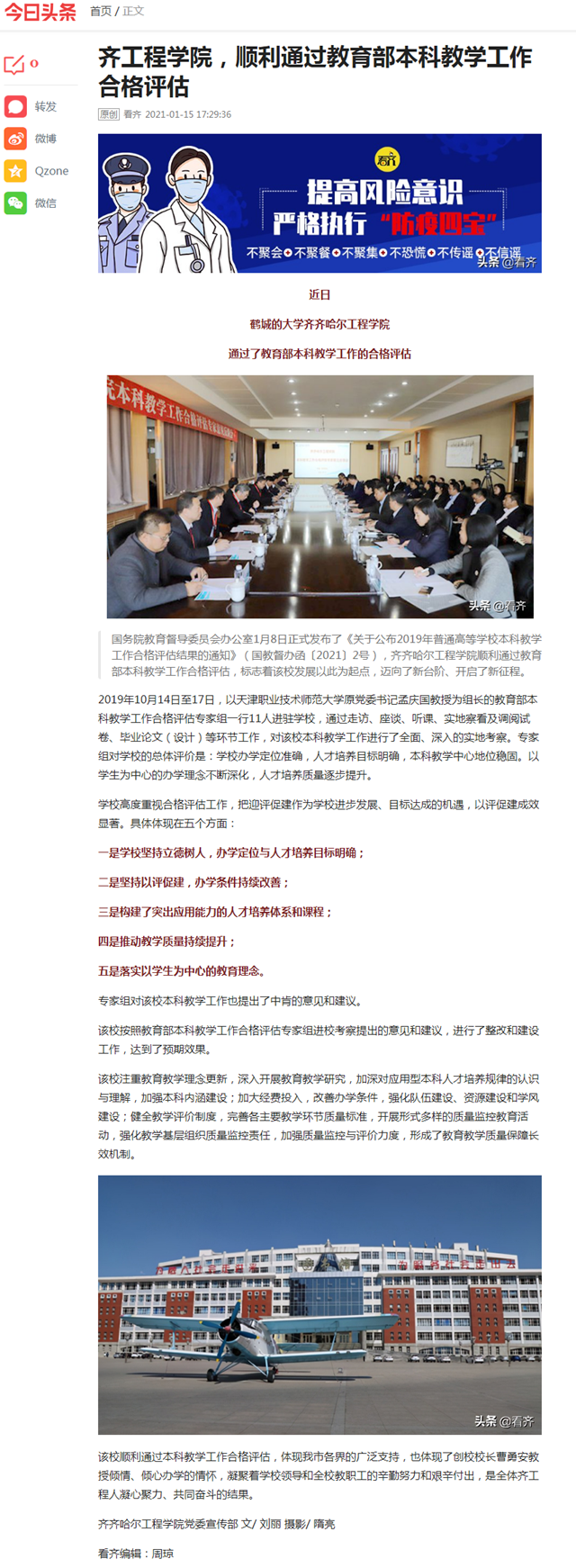 今日头条:齐工程学院,顺利通过教育部本科教学工作合格评估