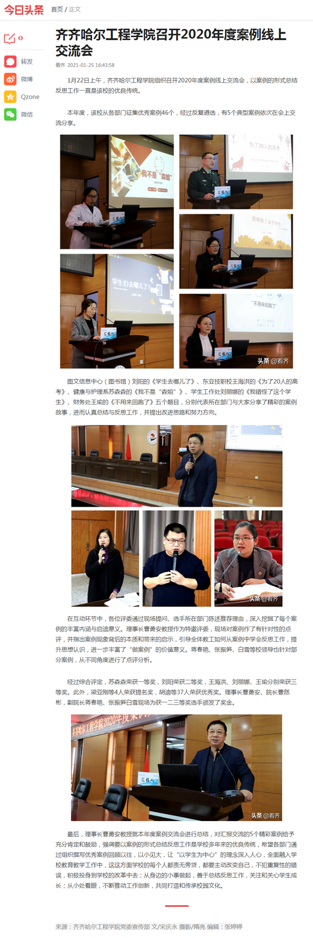 今日头条:齐齐哈尔工程学院召开2020年度案例线上交流会