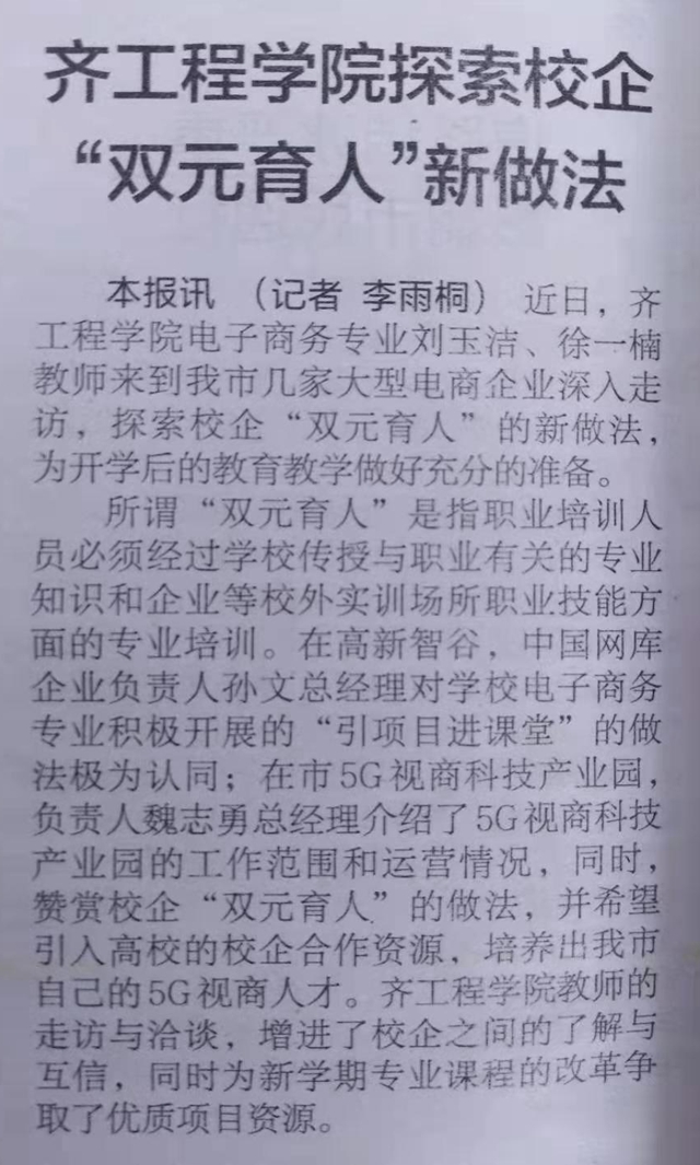 鹤城晚报:齐工程学院探索校企“双元育人”新做法