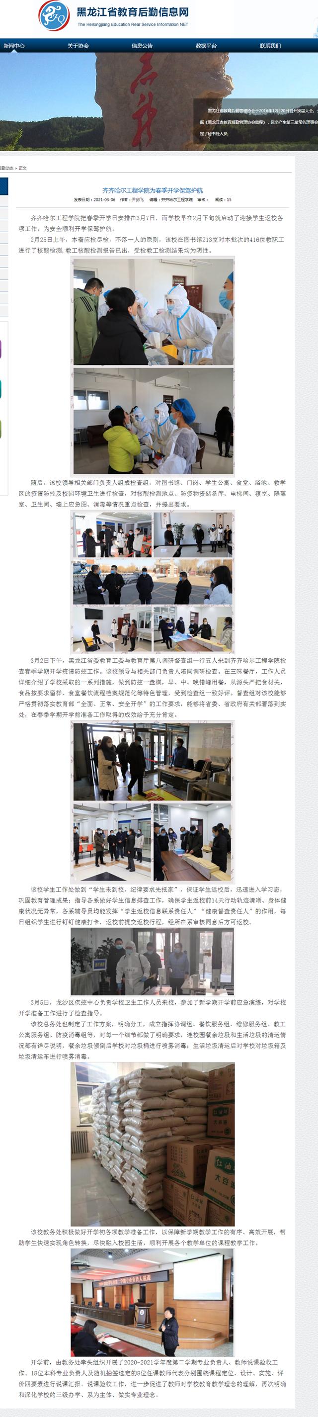黑龙江省教育后勤信息网:齐齐哈尔工程学院为春季开学保驾护航