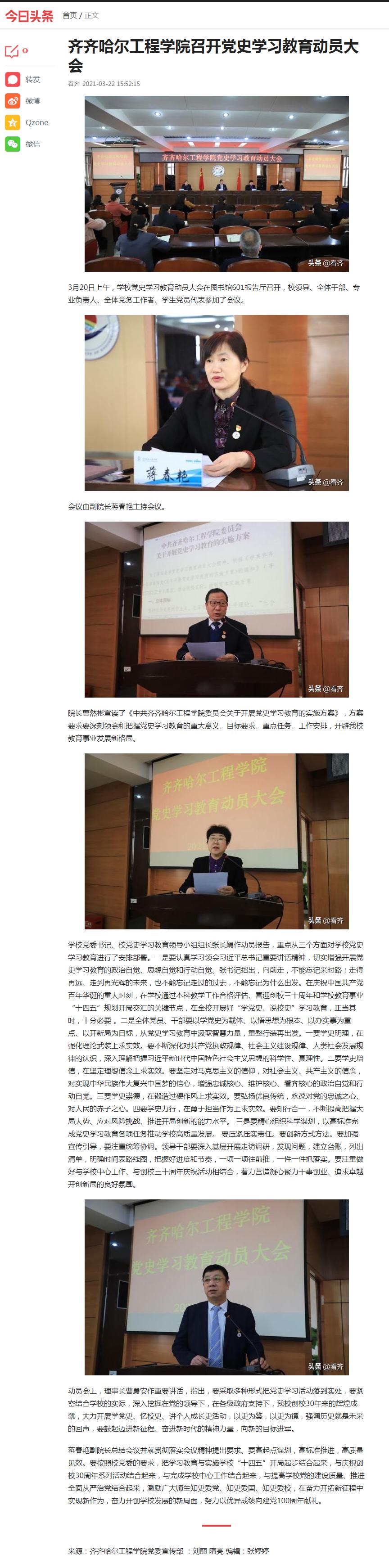今日头条:齐齐哈尔工程学院召开党史学习教育动员大会