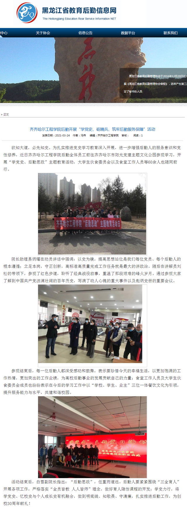黑龙江省教育后勤信息网:齐齐哈尔工程学院后勤开展“学党史、砺精兵、筑牢后勤服务保障”活动