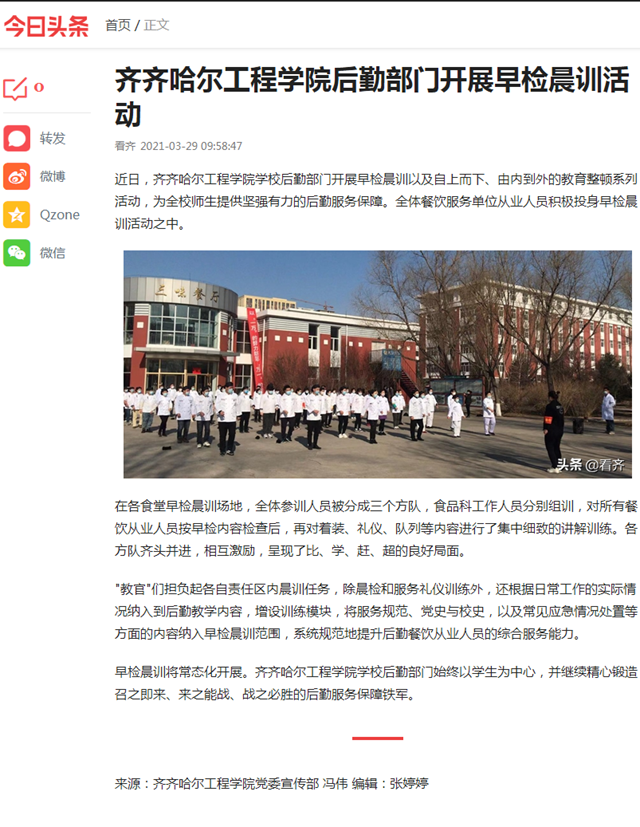 今日头条:齐齐哈尔工程学院后勤部门开展早检晨训活动