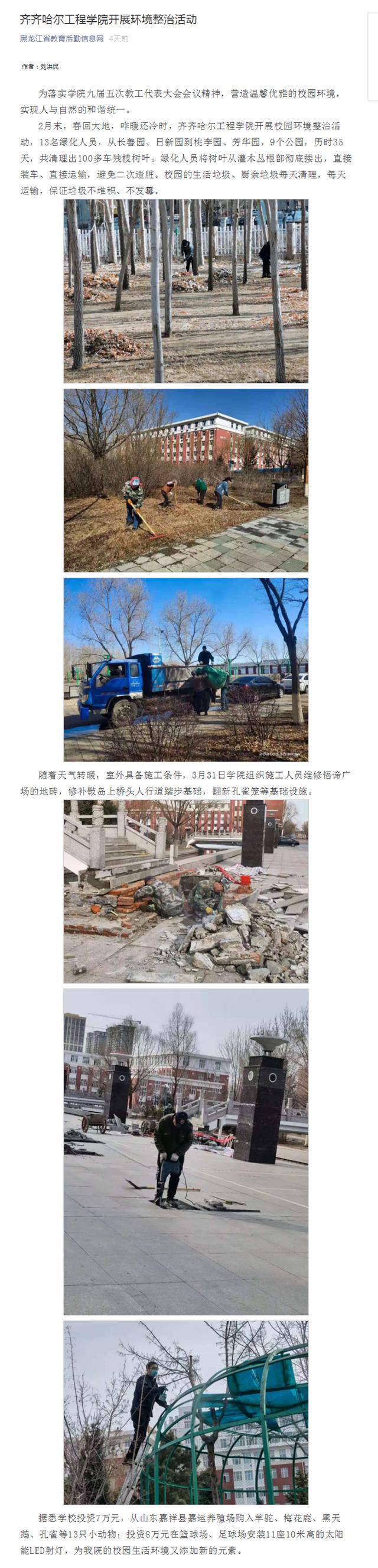 黑龙江省教育后勤信息网:齐齐哈尔工程学院开展环境整治活动