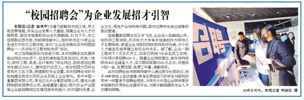 齐齐哈尔日报报道“企业走进高校系列校园招聘会——齐齐哈尔工程学院专场”活动