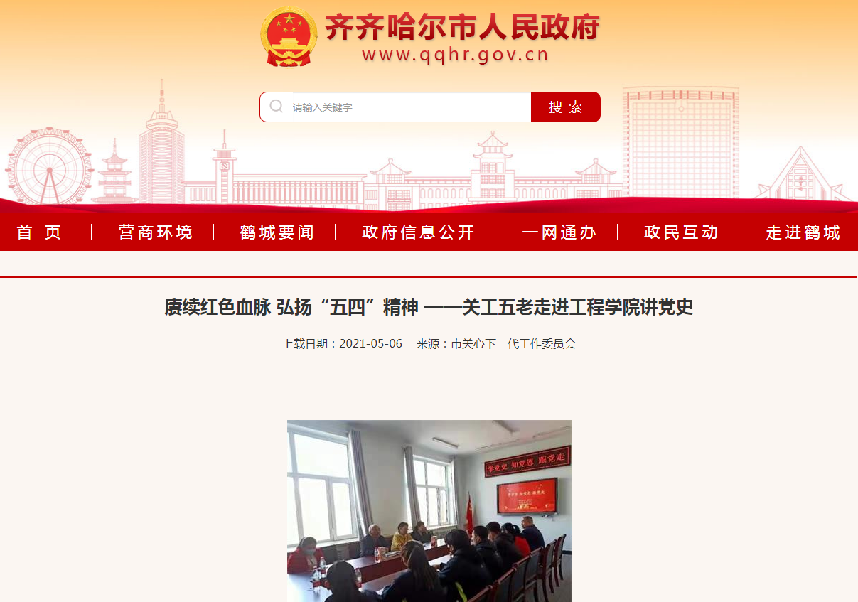 齐齐哈尔市人民政府网报道学校信息工程系党支部开展党史学习教育活动信息
