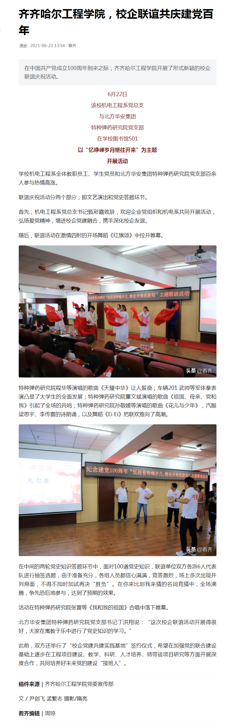 今日头条:齐齐哈尔工程学院,校企联谊共庆建党百年