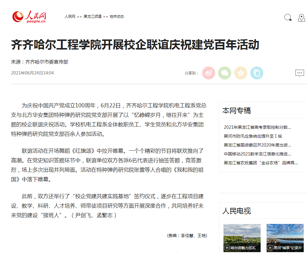 人民网:齐齐哈尔工程学院开展校企联谊庆祝建党百年活动