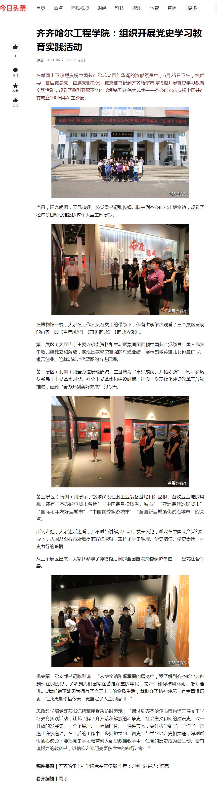 今日头条:齐齐哈尔工程学院:组织开展党史学习教育实践活动
