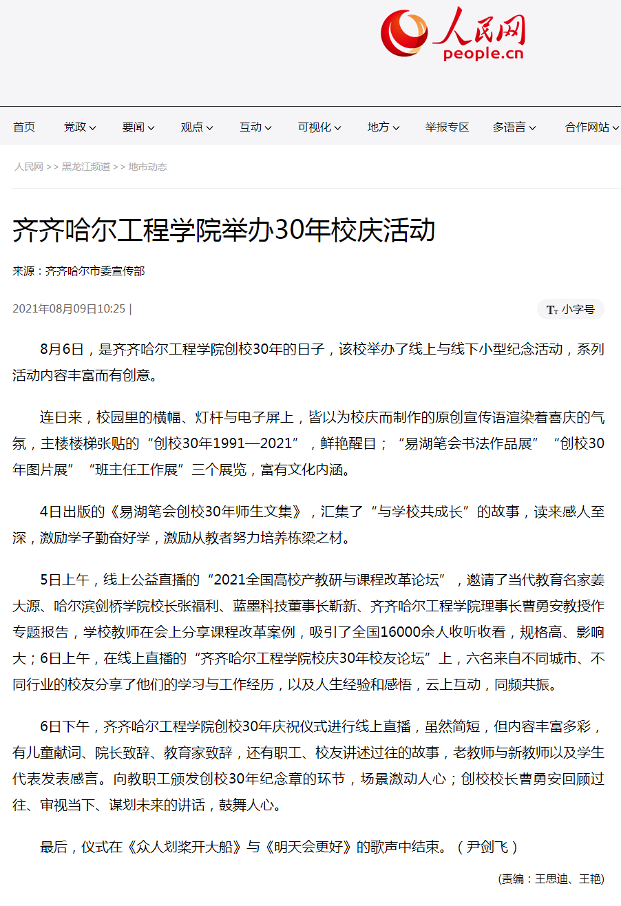 人民网:齐齐哈尔工程学院举办30年校庆活动