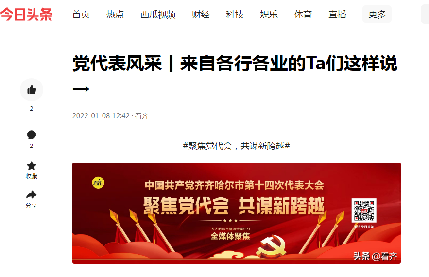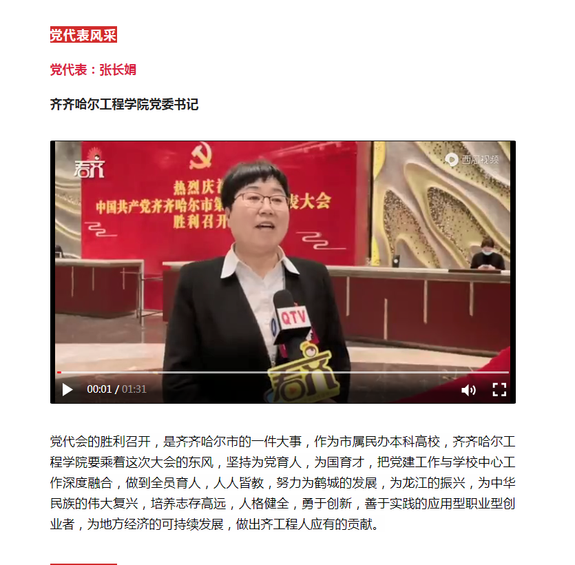 今日头条《党代表风采》栏目报道我校党委书记张长娟同志发言