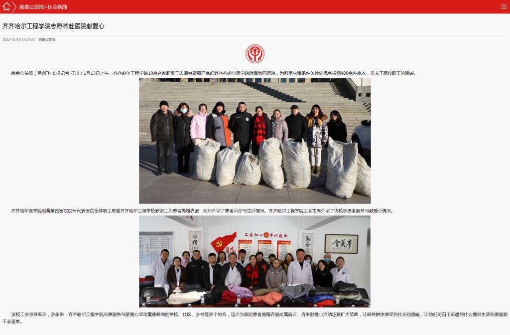 慈善公益报:齐齐哈尔工程学院志愿者赴医院献爱心