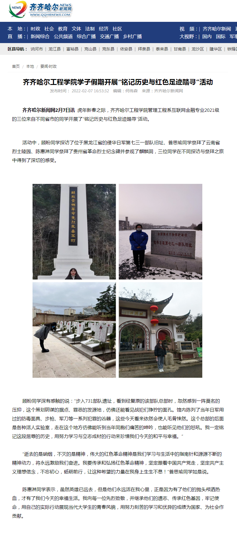 齐齐哈尔新闻网:齐齐哈尔工程学院学子假期开展“铭记历史与红色足迹踏寻”活动
