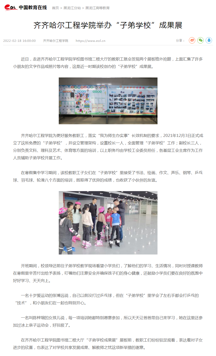 中国教育在线:齐齐哈尔工程学院举办“子弟学校”成果展
