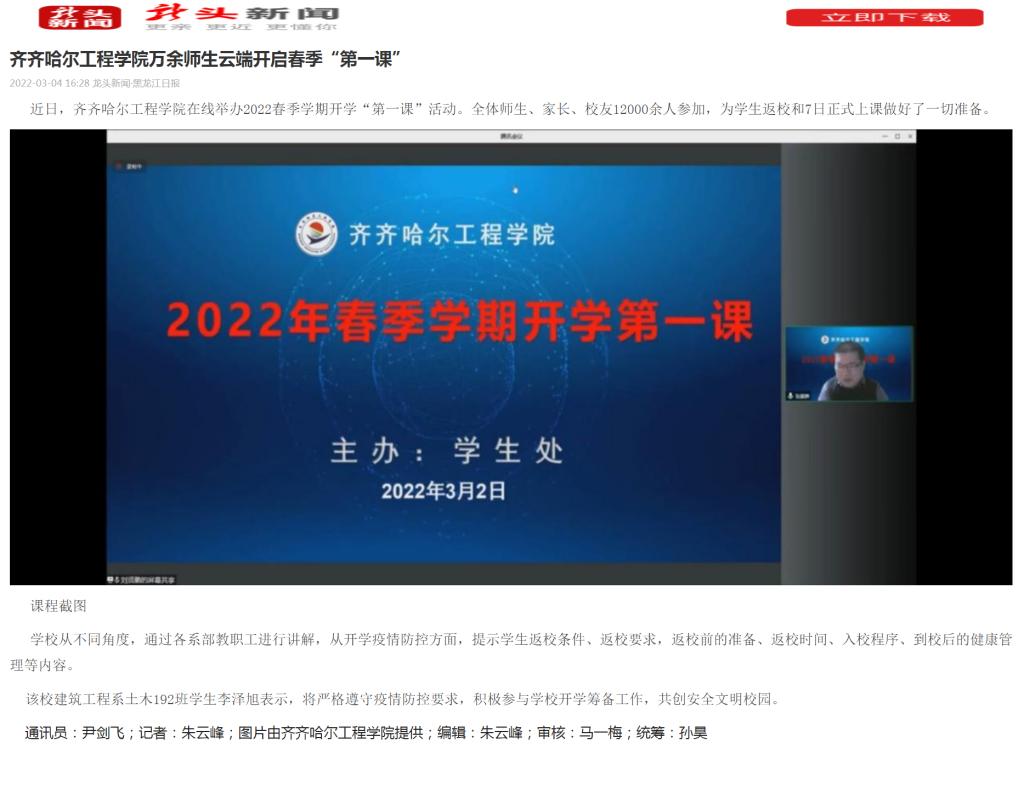 龙头新闻:齐齐哈尔工程学院万余师生云端开启春季“第一课”