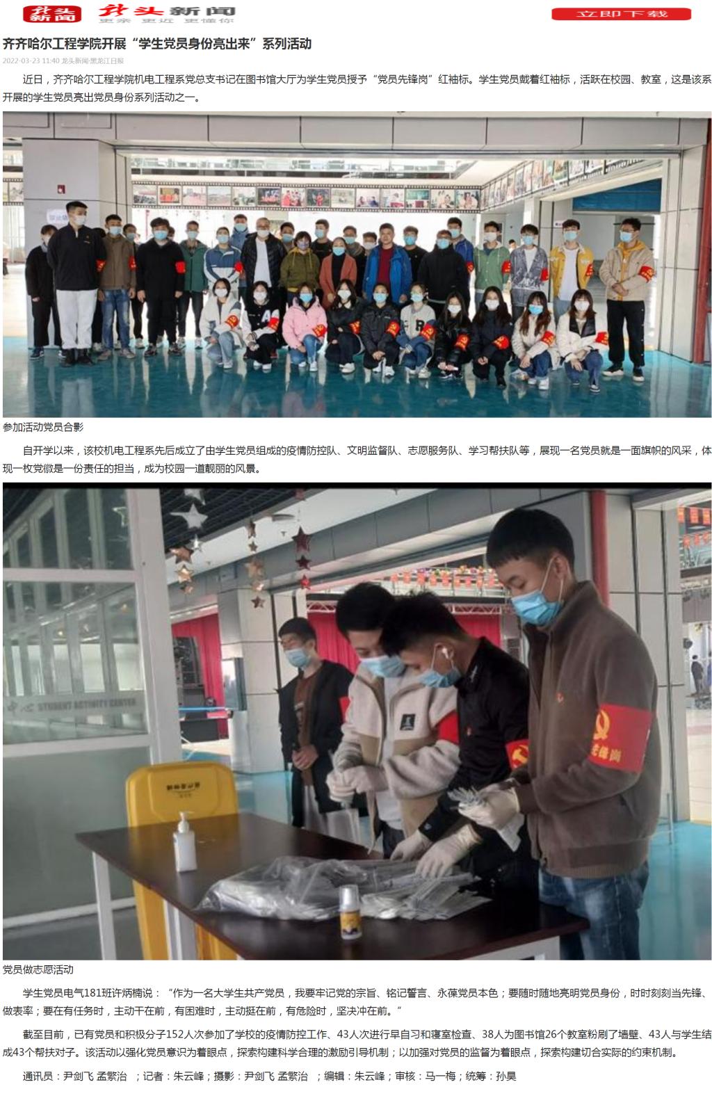 龙头新闻:齐齐哈尔工程学院开展“学生党员身份亮出来”系列活动