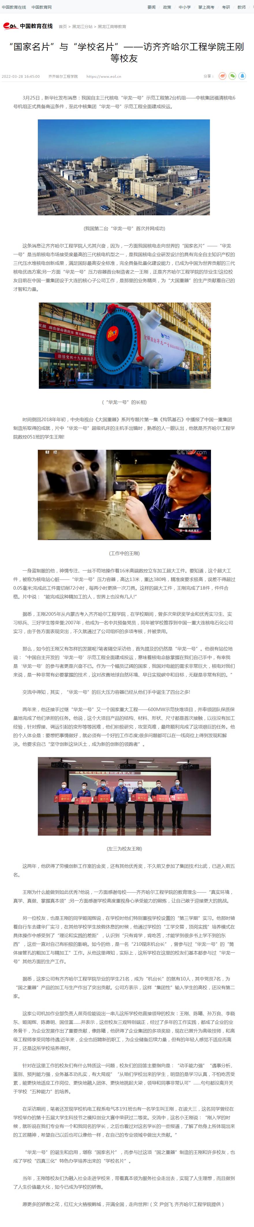 中国教育在线:“国家名片”与“学校名片”——访齐齐哈尔工程学院王刚等校友