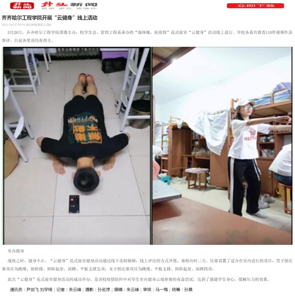 龙头新闻:齐齐哈尔工程学院开展“云健身”线上活动