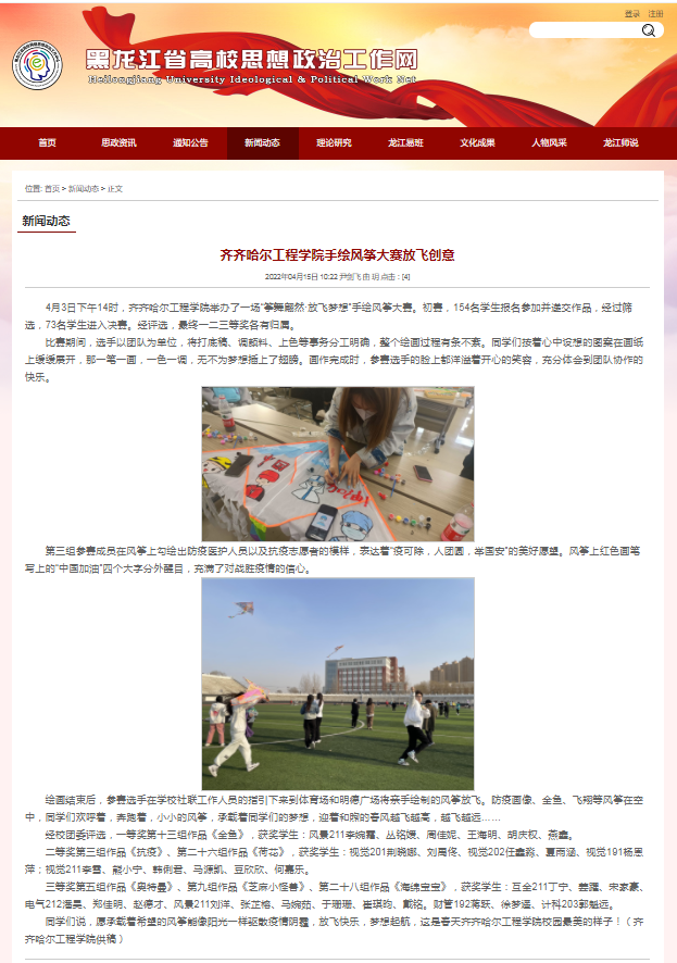 黑龙江省高校思想政治工作网:齐齐哈尔工程学院手绘风筝大赛放飞创意