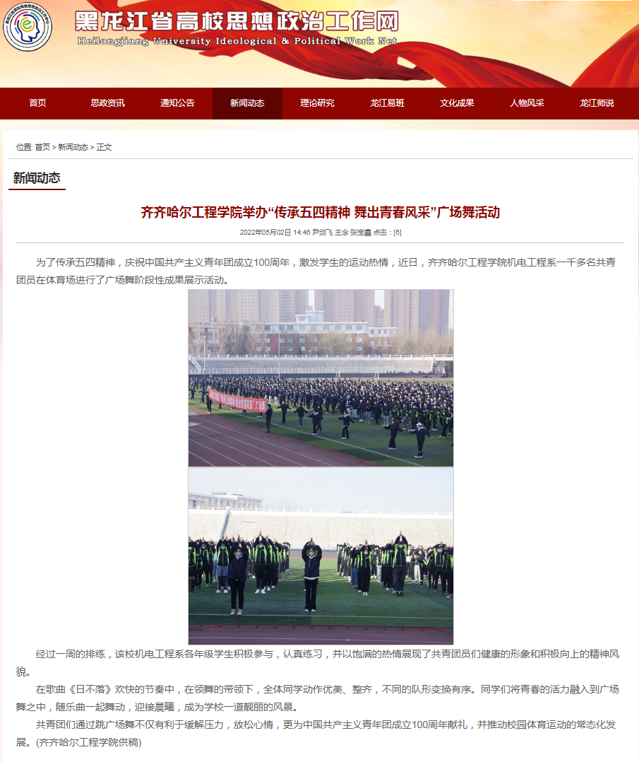 黑龙江省高校思想政治工作网:齐齐哈尔工程学院举办“传承五四精神 舞出青春风采”广场舞活动
