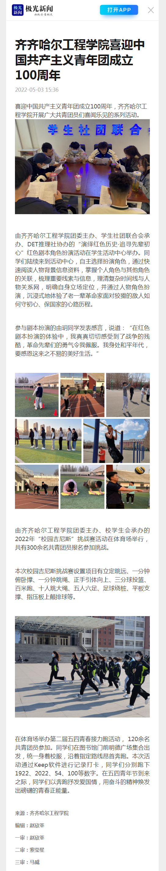 极光新闻:齐齐哈尔工程学院喜迎中国共产主义青年团成立100周年