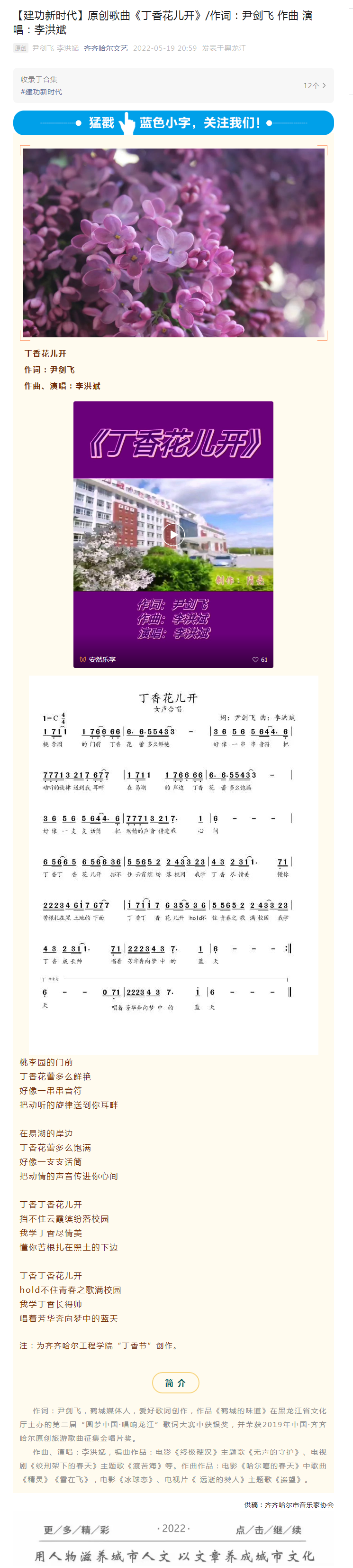 齐齐哈尔文艺:(学校“丁香节”)原创歌曲《丁香花儿开》/作词:尹剑飞 作曲 演唱:李洪斌