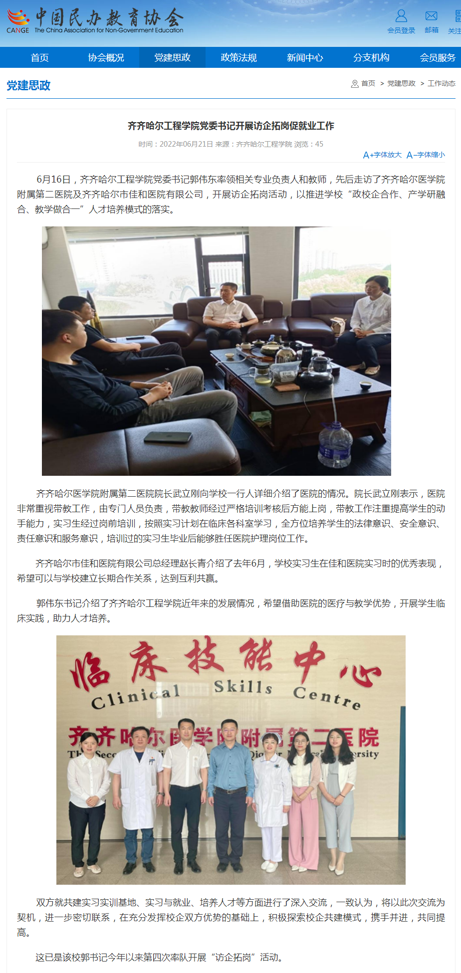 中国民办教育协会网:齐齐哈尔工程学院党委书记开展访企拓岗促就业工作