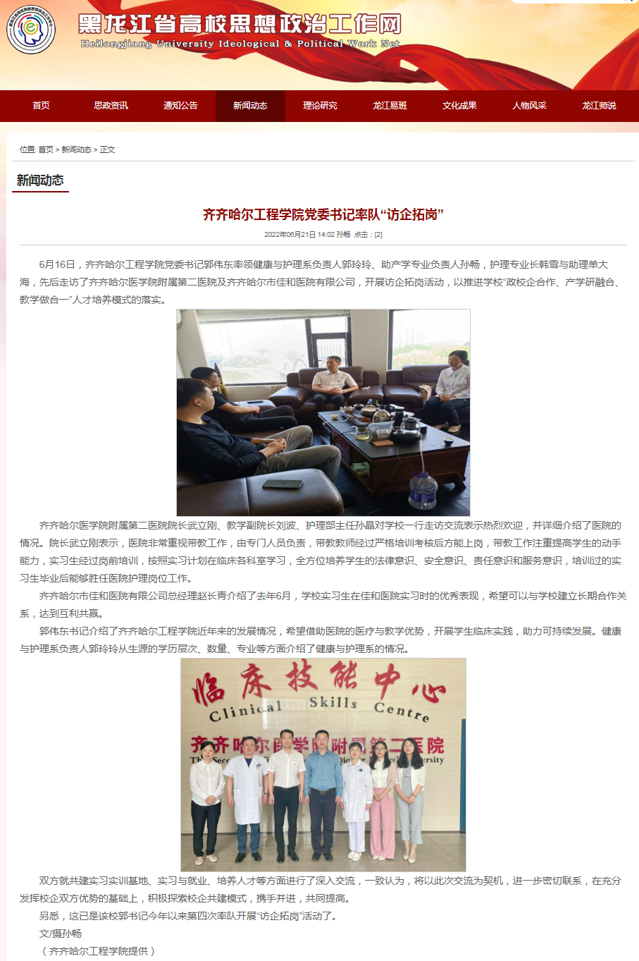 黑龙江省高校思想政治工作网:齐齐哈尔工程学院党委书记率队“访企拓岗”