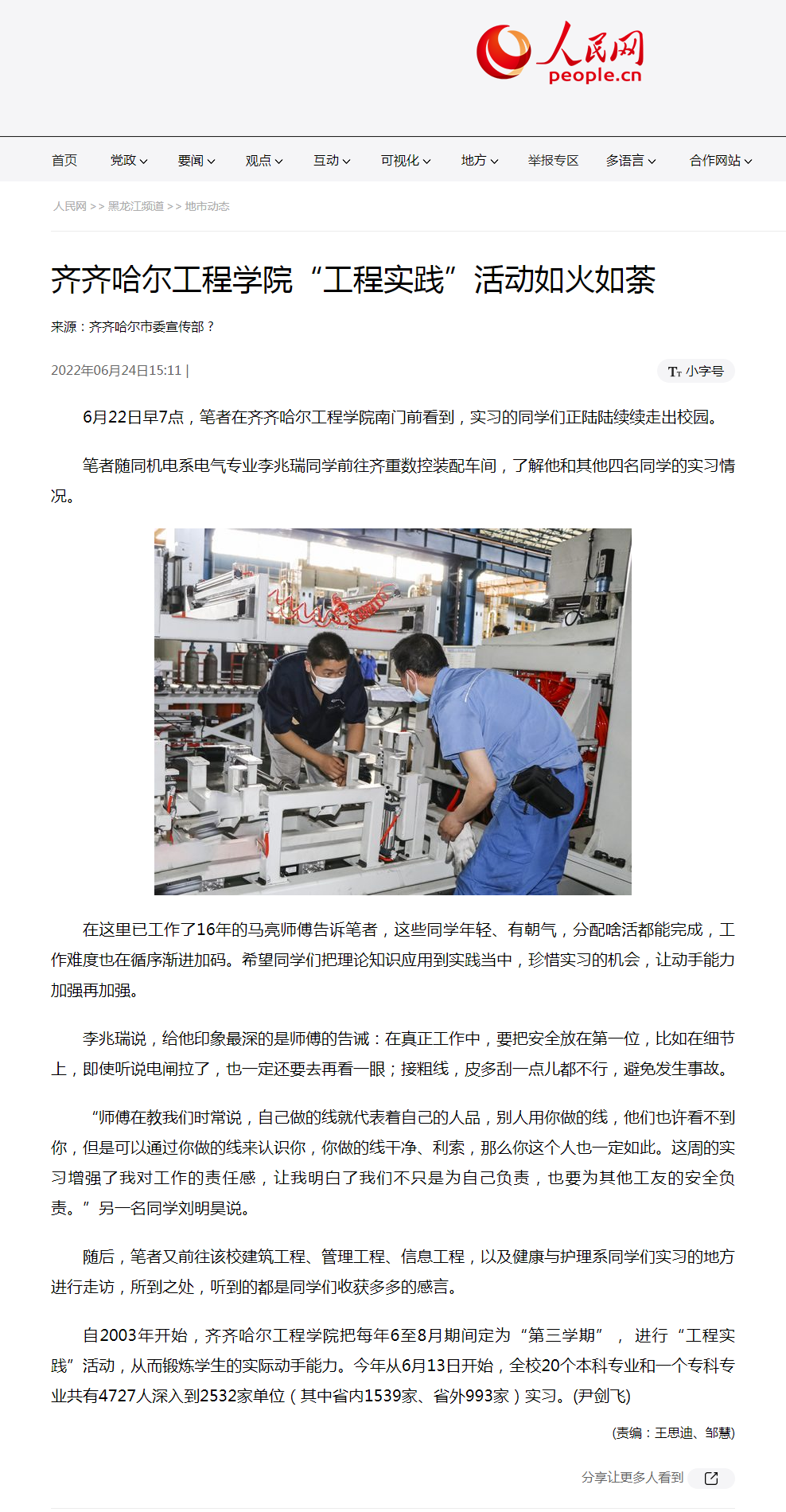人民网:齐齐哈尔工程学院“工程实践”活动如火如荼