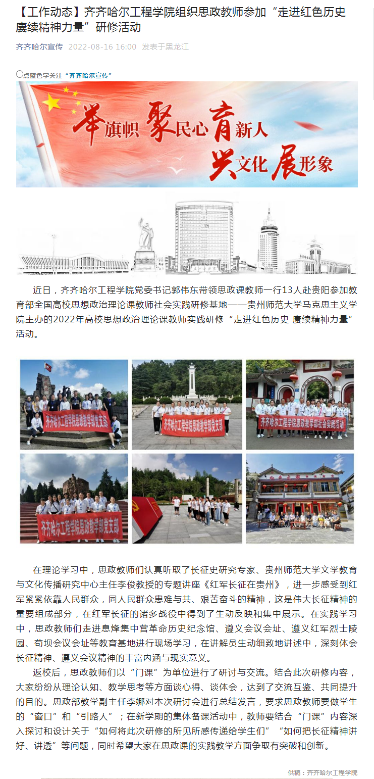 齐齐哈尔宣传:齐齐哈尔工程学院组织思政教师参加“走进红色历史 赓续精神力量”研修活动