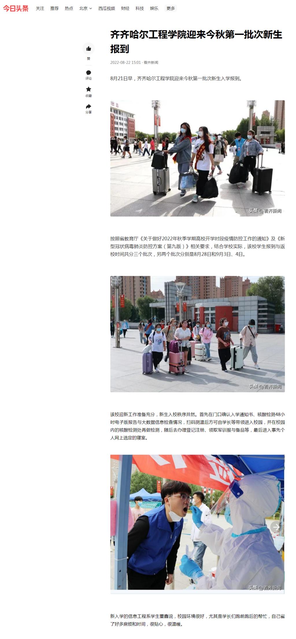今日头条:齐齐哈尔工程学院迎来今秋第一批次新生报到