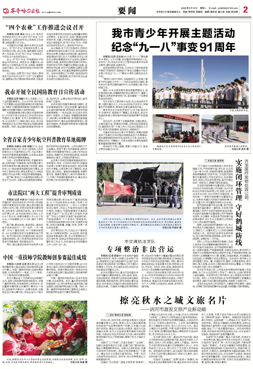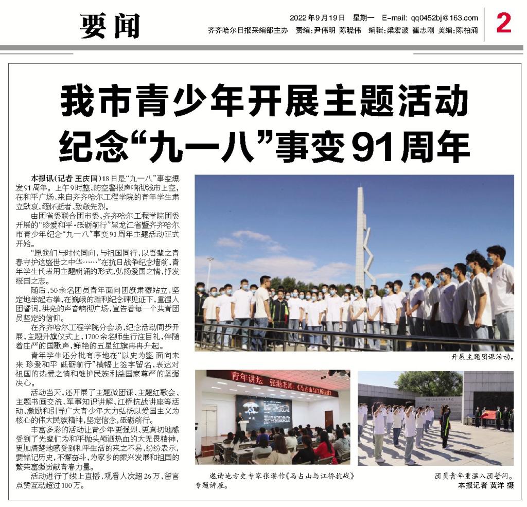 齐齐哈尔日报要闻版图文报道我校九一八主题团日活动