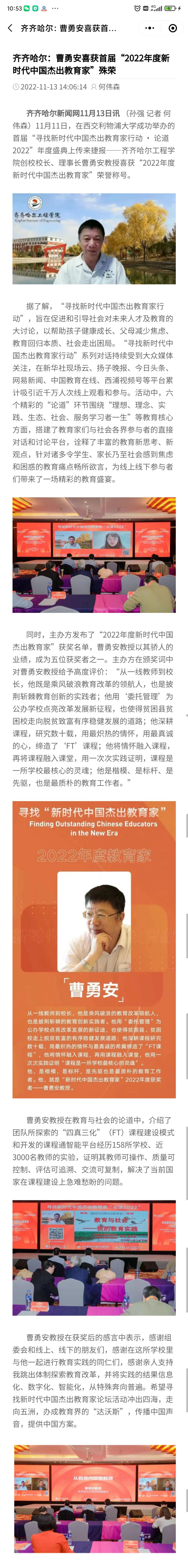 看齐号:齐齐哈尔:曹勇安喜获首届“2022年度新时代中国杰出教育家”殊荣