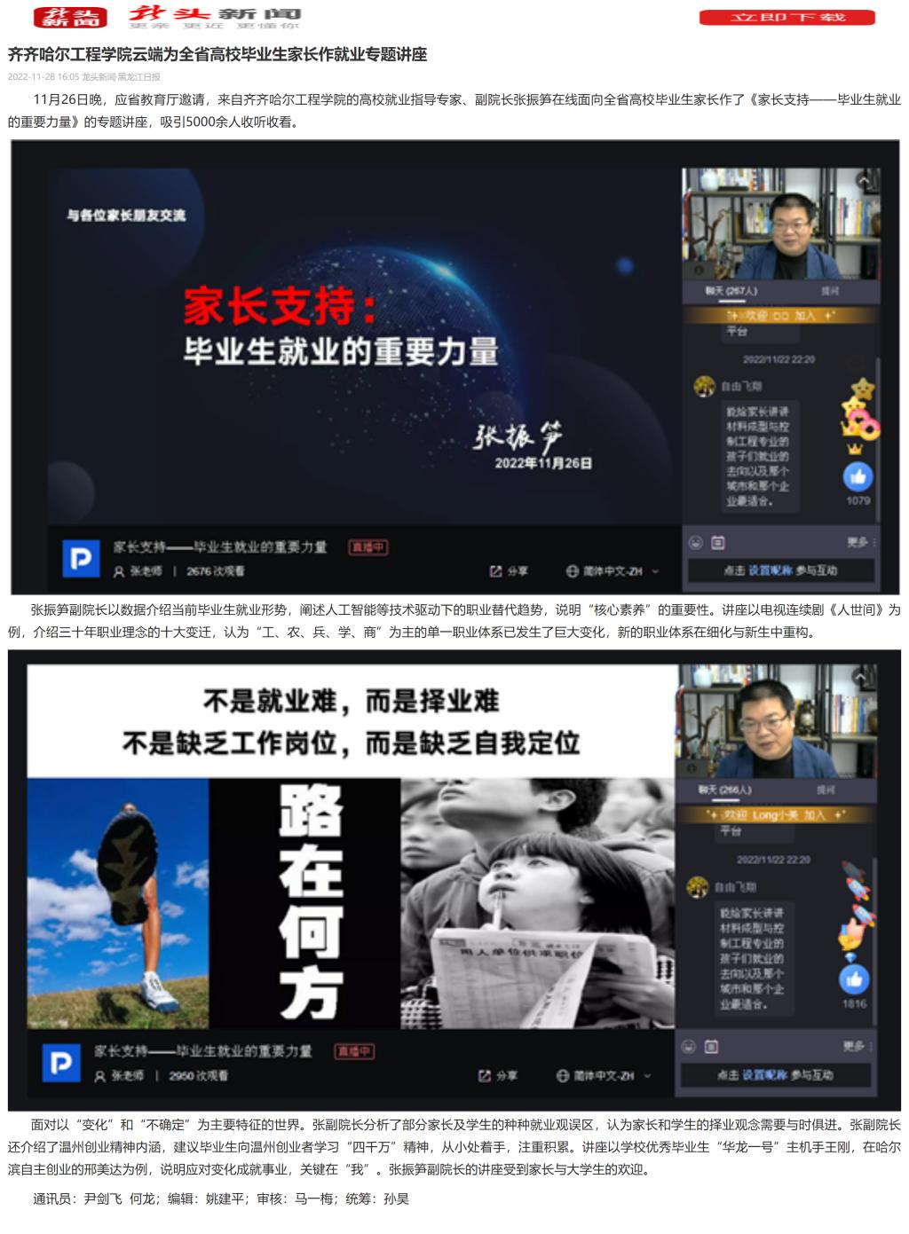龙头新闻:齐齐哈尔工程学院云端为全省高校毕业生家长作就业专题讲座