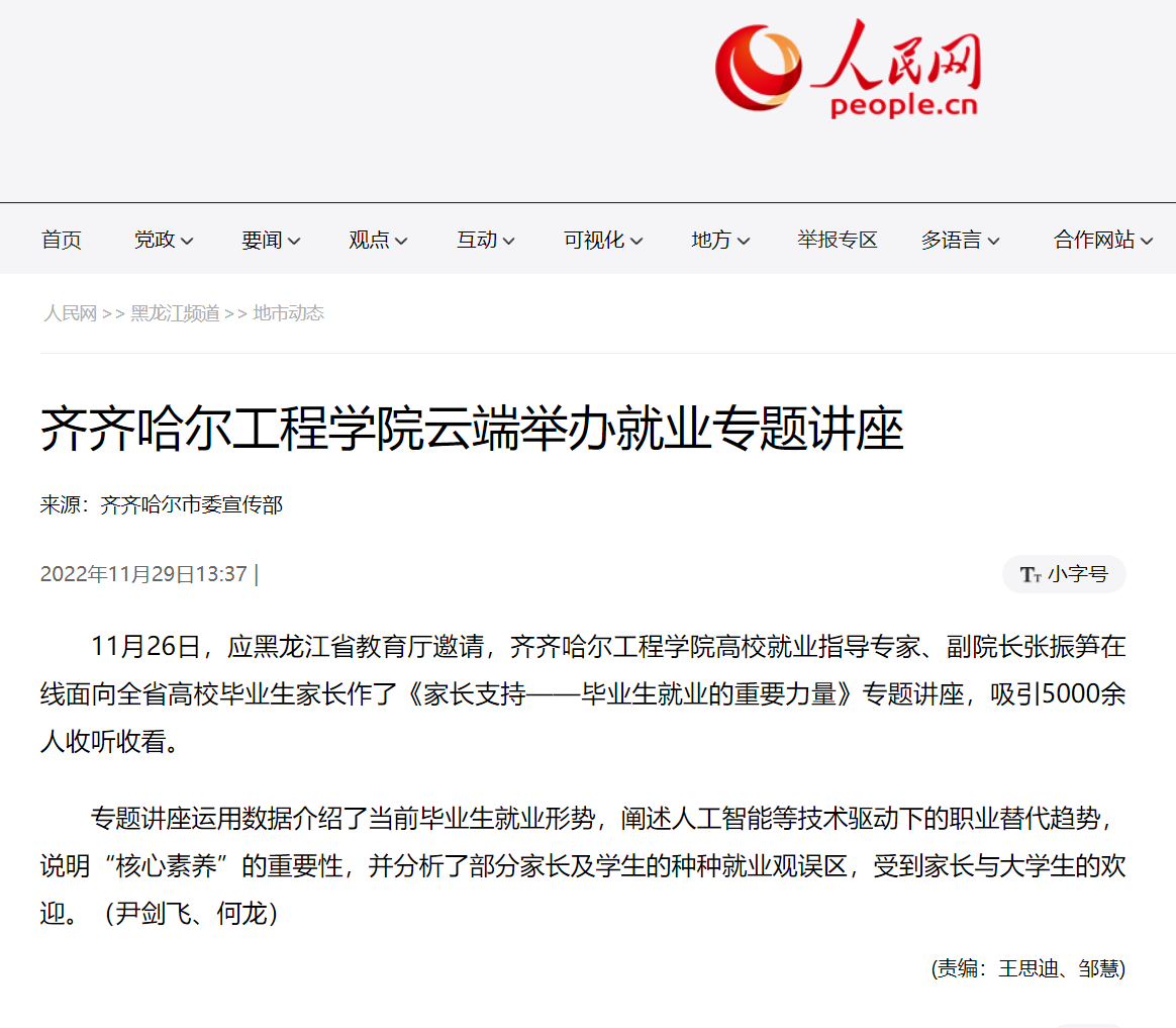 人民网:齐齐哈尔工程学院云端举办就业专题讲座