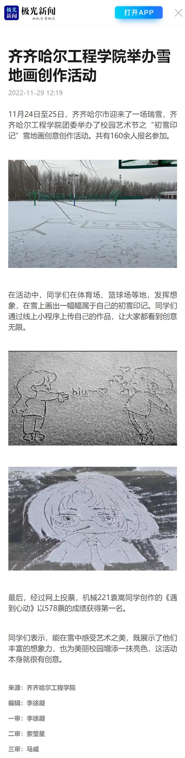 极光新闻:齐齐哈尔工程学院举办雪地画创作活动