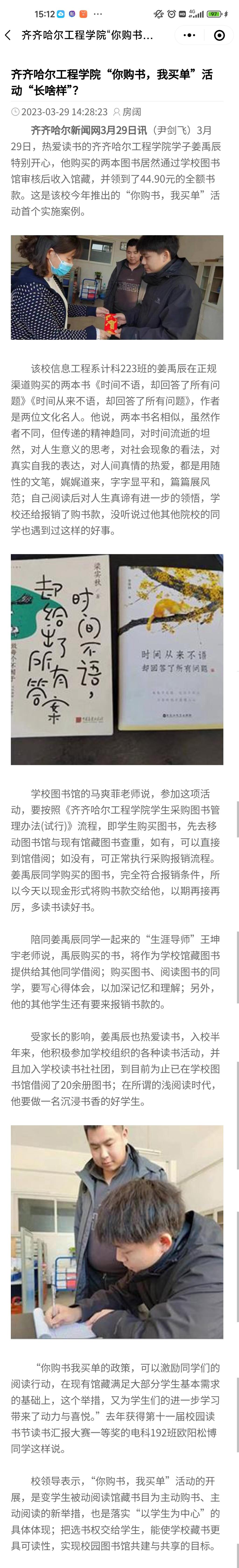 看齐:齐齐哈尔工程学院“你购书,我买单”活动“长啥样”?