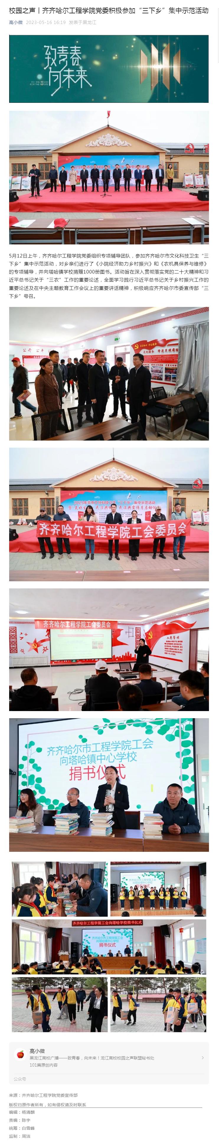 黑龙江高校广播(高小微公众号):齐齐哈尔工程学院党委积极参加“三下乡”集中示范活动